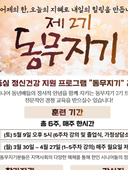 The K-SCAP is a peer-driven mental health care program designed for Korean seniors. Certified senior care providers, known as SCAPers, offer emotional support to other seniors through various community outlets. K-SCAP training is a six weeks course offered by a licensed professional counselor and a marriage therapist.